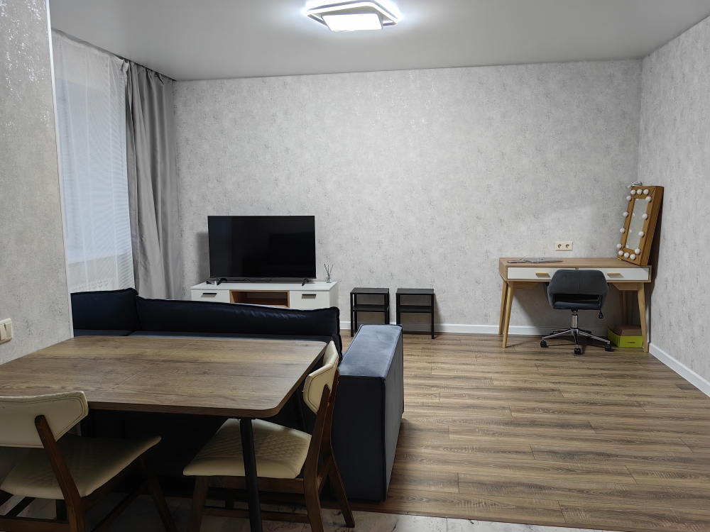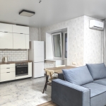- Продаётся 2 к.кв. – Королёв,  мкр.Болшево,  ЖК «Театральный парк», Бурковский проезд, дом 52к1; 2020 год постройки; 2эт./4мк; 49,4/27,6/10;  евродвушка: кухня (10м2) и гостиная (15,5м2) объединены, сделано зонирование, изолированная спальня – 12,1 м2, застеклённая лоджия, раздельный санузел. Евроремонт.  Состояние отличное. Окна (ПВХ) – двор. Остаются вся мебель и техника: холодильник, стиральная машина, посудомоечная машина кроме телевизора.