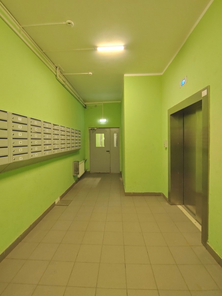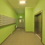 - П о д ъ е з д, д в о р: Современный подъезд. 2 лифта: грузовой и пассажирский. Пандус. Зеленый двор.