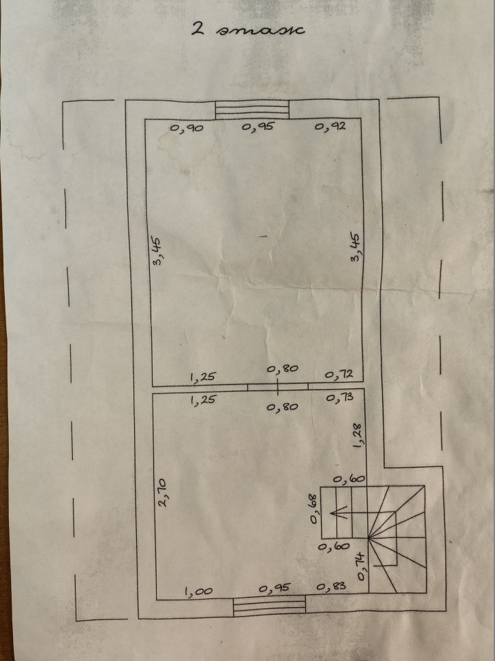 Д о м: 2-этажный, общая площадь – 45,4 м2, материал стен –щитовой, крыша – кованое железо, 2 этажа: 1 этаж – коридор (6,26м2), кухня-гостиная (19,8м2); 2 этаж – коридор (7,5м2), спальня (9,6м2).