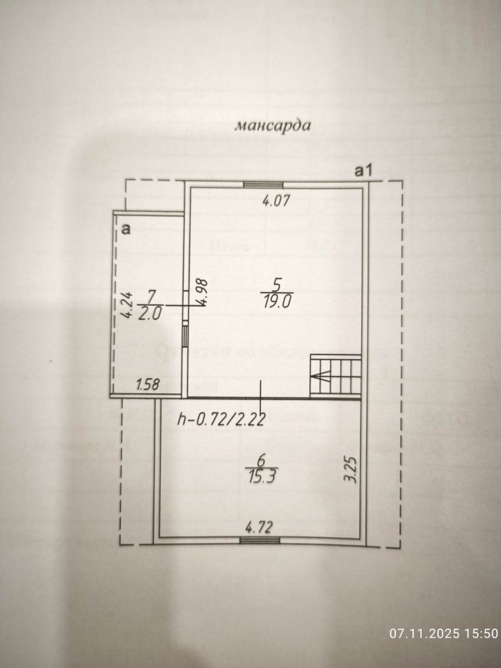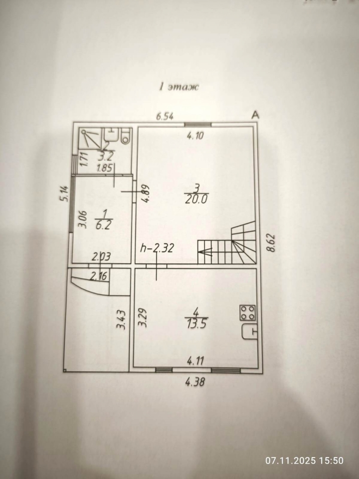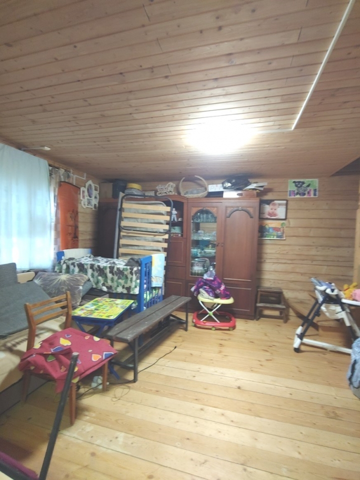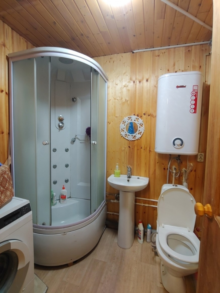 Д о м брусовой, старый 150х150 (1-ый этаж +мансардный) на монолитном ленточном фундаменте, общей площадью 76 м2 по документам, построен в 2013 году. На первом этаже располагается большая кухня, гостиная, санузел (туалет, умывальник, душевая кабина, стиральная машина), прихожая.