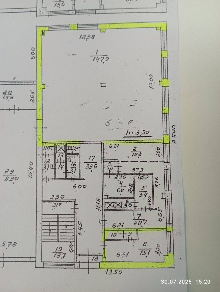 Высота потолка – 3,80м.